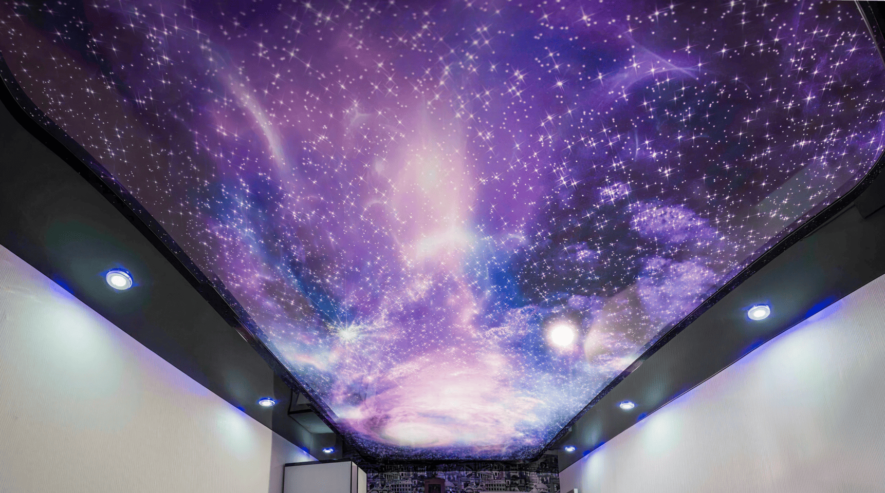 Благодаря этой технологии на потолке можно воспроизвести практически любое изображение: от реалистичного голубого неба с облаками до сложных художественных композиций, фотографий или абстрактных узоров. Возможности ограничены лишь вашей фантазией.