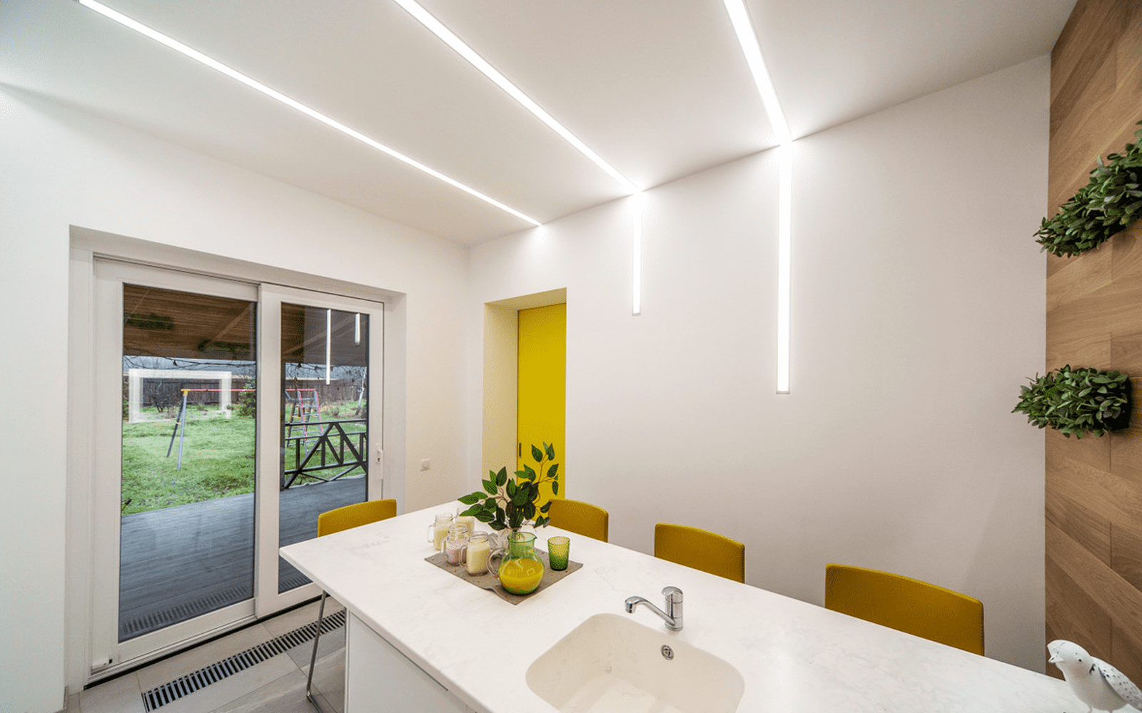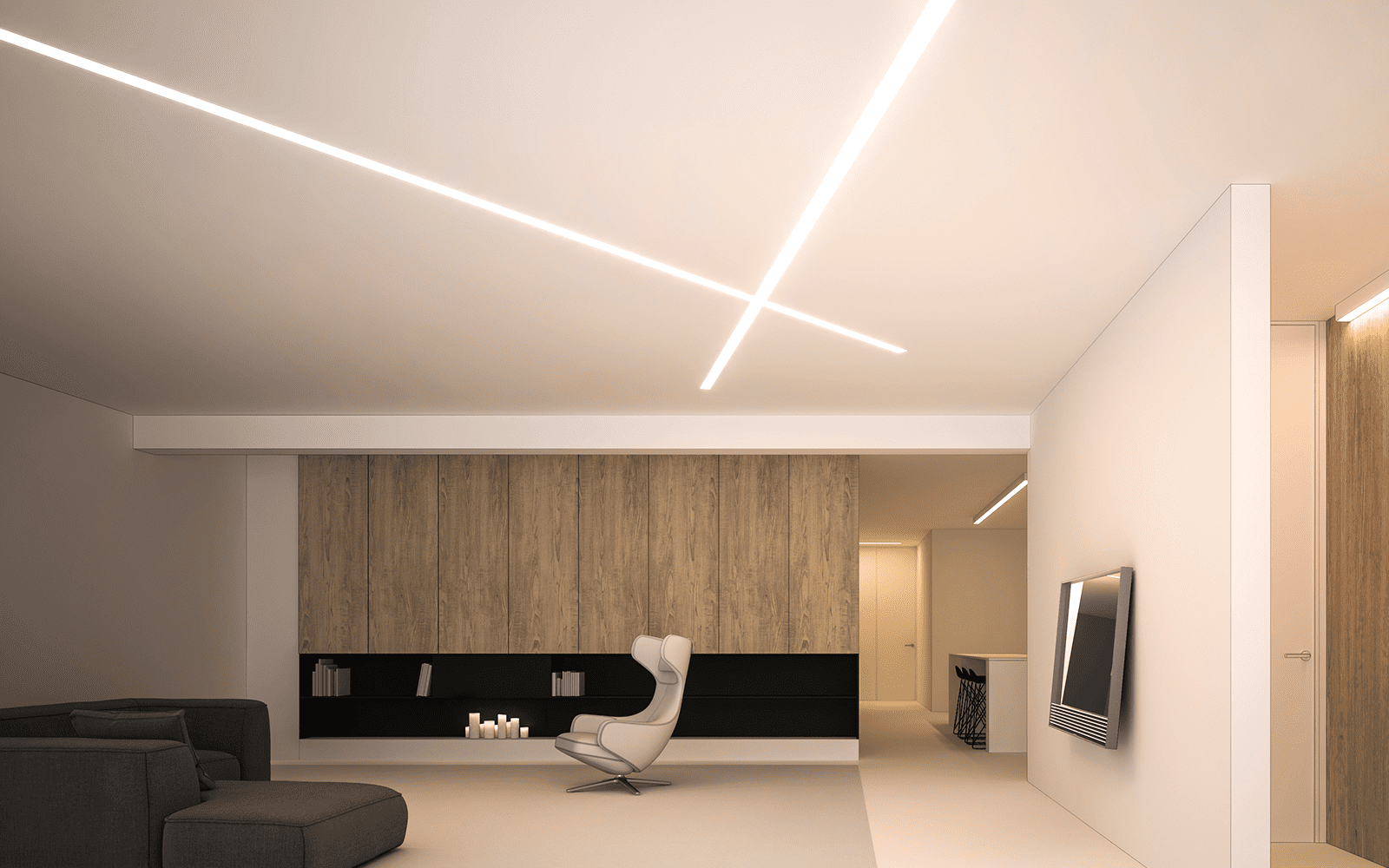 Технология световых линий совмещает в себе функции декоративного и основного освещения. В отличие от точечных светильников или люстр, световые линии равномерно распределяют свет по всей площади комнаты, не создавая резких теней и обеспечивая комфортное освещение для глаз.