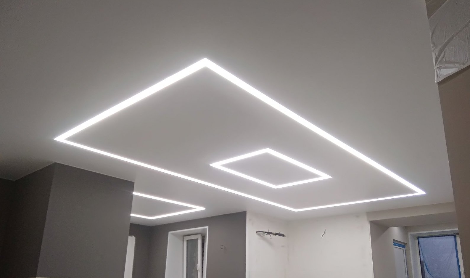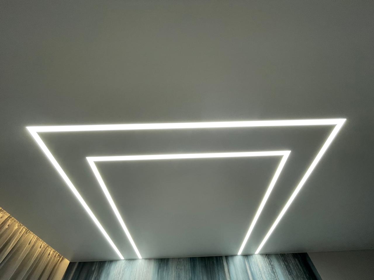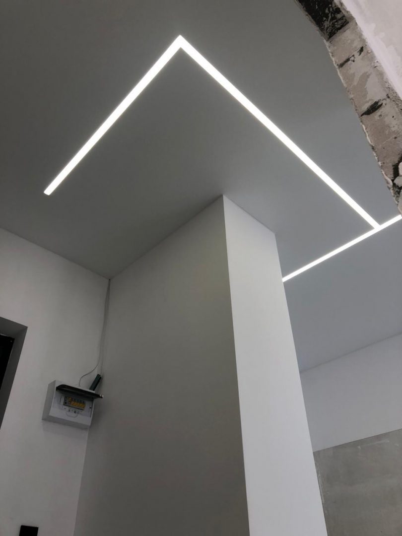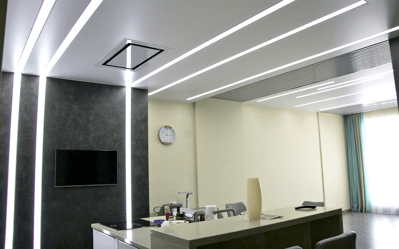 Наша компания специализируется на установке натяжных потолков со световыми линиями и предлагает комплекс услуг: от проектирования до монтажа и последующего обслуживания.