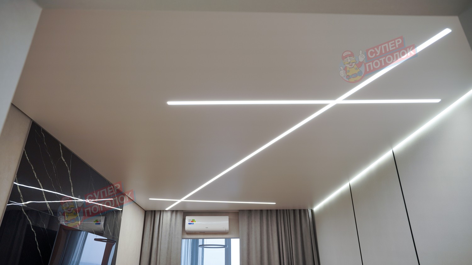Натяжные потолки со световыми линиями – это современное дизайнерское решение, которое преображает интерьер с помощью встроенных светящихся элементов. Компания «Супер потолок» предлагает установку натяжных потолков со световыми линиями по доступным ценам от 1100 руб/м² с профессиональным монтажом.