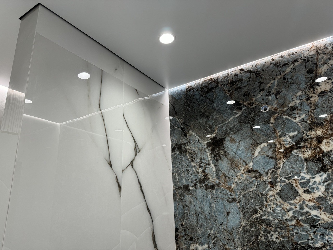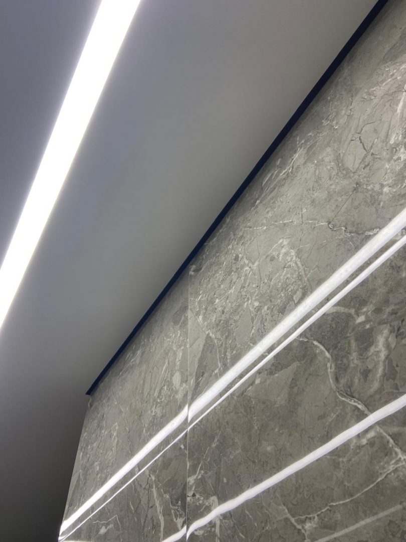 Стандартный натяжной потолок эконом варианта решает задачу скрыть неприглядную щель между полотном и стеной, пряча её за резиновой вставкой. На первый взгляд это выглядит аккуратно, однако со временем резиновая заглушка способна пожелтеть от ультрафиолета, отрезвониться из‑за усадки здания или попросту отвалиться. Если стены неровные, вставка идёт волной, подчёркивая огрехи геометрии. Теневой потолок, напротив, делает акцент не на маскировке, а на идеальном сопряжении: алюминиевый профиль надёжно фиксируется по периметру, исключая люфт, а сам зазор остаётся неизменным на протяжении всего срока службы. Чёрная линия не меняет цвет, не деформируется и гармонично сочетается как с лаконичным минимализмом, так и с дорогим классическим интерьером. В итоге теневой вариант выглядит актуальным, подчёркивает премиальный статус помещения и не требует дополнительных декоративных элементов, которые приходится регулярно обновлять в классическом решении.