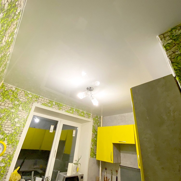 Глянцевые потолки – самое популярное решение для кухни. Их зеркальная поверхность визуально увеличивает пространство и отражает свет, делая помещение светлее. Такие потолки проще всего мыть, и на них меньше заметны следы от конденсата.
