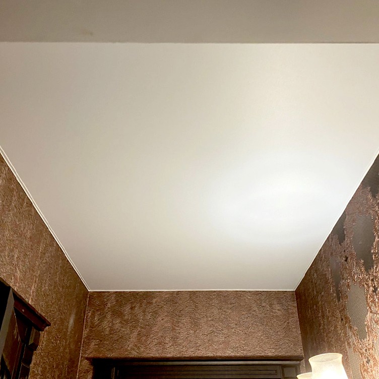 Натяжные потолки легко очищаются от загрязнений и не требуют сложного ухода. Они устойчивы к влаге и сохраняют свой первоначальный вид, что делает их практичным выбором для спальни.